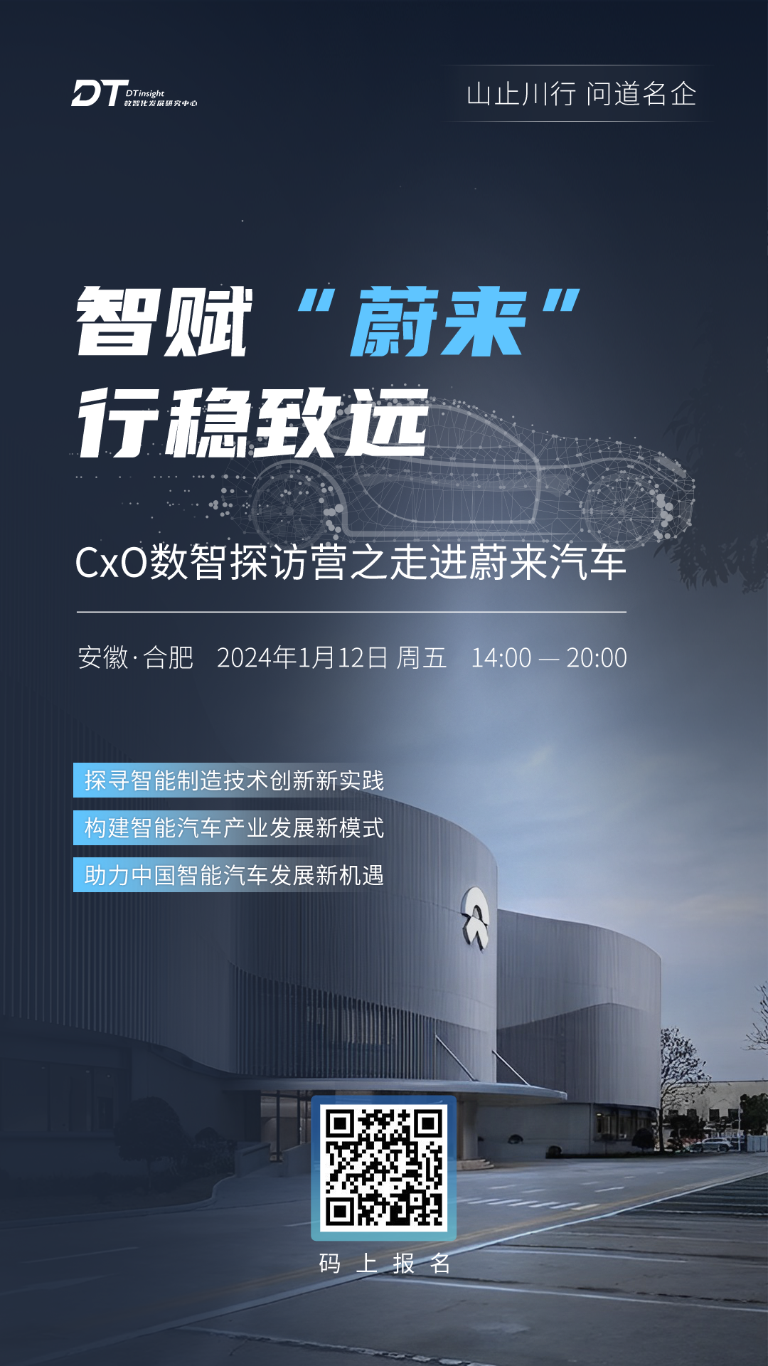 合肥,正在引领中国创新模式新风向。 一家家深陷困境、举步维艰的独角兽企业,在安徽合肥实现了“史诗般的崛起”,这一切都要归功于人们口中相传的“合肥模式”。 何为“合肥模式”?“合肥模式”独特之处在于背后拥有国有资本优势,重点是聚焦产业发展定位,找准产业链关键环节重点企业,通过国有资本+社会资本,共同培育发展产业项目,待项目成熟后,国有资本以市场化方式安全退出,转投其他产业项目,不断延伸拓展地方产业链条。 从全球液晶显示器的“领跑者”京东方,到中国智能语音领域“领头羊”科大讯飞,从中国最先进的动态随机存取存储芯片制造商长鑫存储,到全球成长最快的新能源车企之一蔚来汽车,无一不是在“合肥模式”加持下焕发出新的生机,推动企业进入新的高质量发展时代。 伴随着数字化转型的加速,以及国家政策的推动,中国汽车制造业也迎来了新的发展趋势和特点,新能源汽车已经成为中国汽车产业在世界上一个新的标签,中国汽车产业也从“追赶者”的角色成功转变为引领者,让世界目光看向中国。蔚来汽车作为一家全球化的智能电动汽车公司已经成为“中国品牌”代表和佼佼者。 新时代,在“合肥模式”加持下,从2021年4月29日破土动工,到2022年9月26日正式投产,蔚来第二先进制造基地仅用时10个月就完成全新工厂、全新车型的生产启动,展现蔚来速度的同时,也展示了合肥速度。 如今,蔚来第二先进制造基地已经发展成为全球领先的全链路数字化智能工厂,最鲜明的特点在于突破了传统大规模生产和个性化定制的矛盾局限,既满足个性化定制,又能够快速交付车辆,是“新一代汽车智造的样板工厂”。 从市场的角度看,过去一年多来,外界感受到的明显节奏就是,蔚来的交付节奏越来越快,短短四个多月里就完成了EC7、全新ES6、ET5T、全新ES8、全新EC6等五款新车型的高质量交付。 蔚来能够实现快速高质量的交付不仅因为蔚来第二先进制造基地提供的能力,还有“全链路数字化”的秘诀,使蔚来达到更为高效精准的质量管控。并且通过统一数据流,实现全过程的追溯和防错,满足个性定制化需求的高端智能电动汽车,正源源不断从蔚来第二先进制造基地下线驶出。 为学习中国智能汽车发展新模式,探寻全链路智能、柔性化工艺和低碳可持续的制造奥秘。DTinsight中国数智发展研究中心携手蔚来汽车主办,以【智赋“蔚来” 行稳致远】为主题的“山止川行 问道名企—CxO数智探访营”活动,将于2024年1月12日走进“蔚来中心|合肥新桥产业园”,特邀产业领域资深专家、企业数智化领军者共聚一堂,感受更智能、更美好的“蔚来”发展之路。