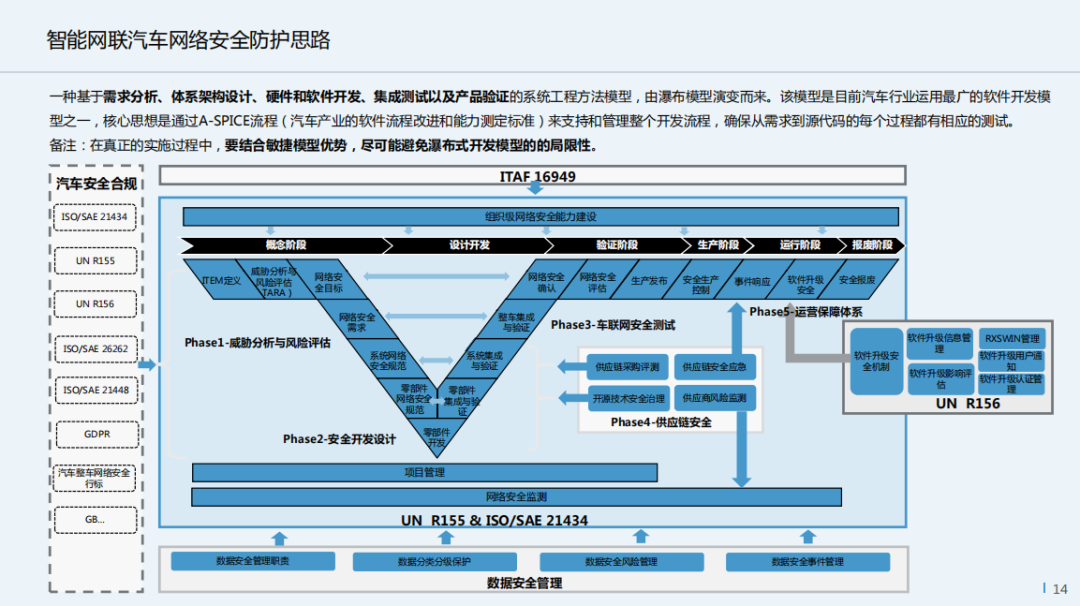 ![]() “面对智能网联汽车国内外法律法规要求,以及来自攻击技术升级、网络安全威胁、安全运营等方面的挑战,北汽福田汽车基于需求分析、体系架构设计、硬件和软件开发、集成测试以及产品验证的系统工程方法模型,通过A-SPICE流程来支持和管理整个开发流程,确保从需求到源代码的每个过程都有相应的测试。”